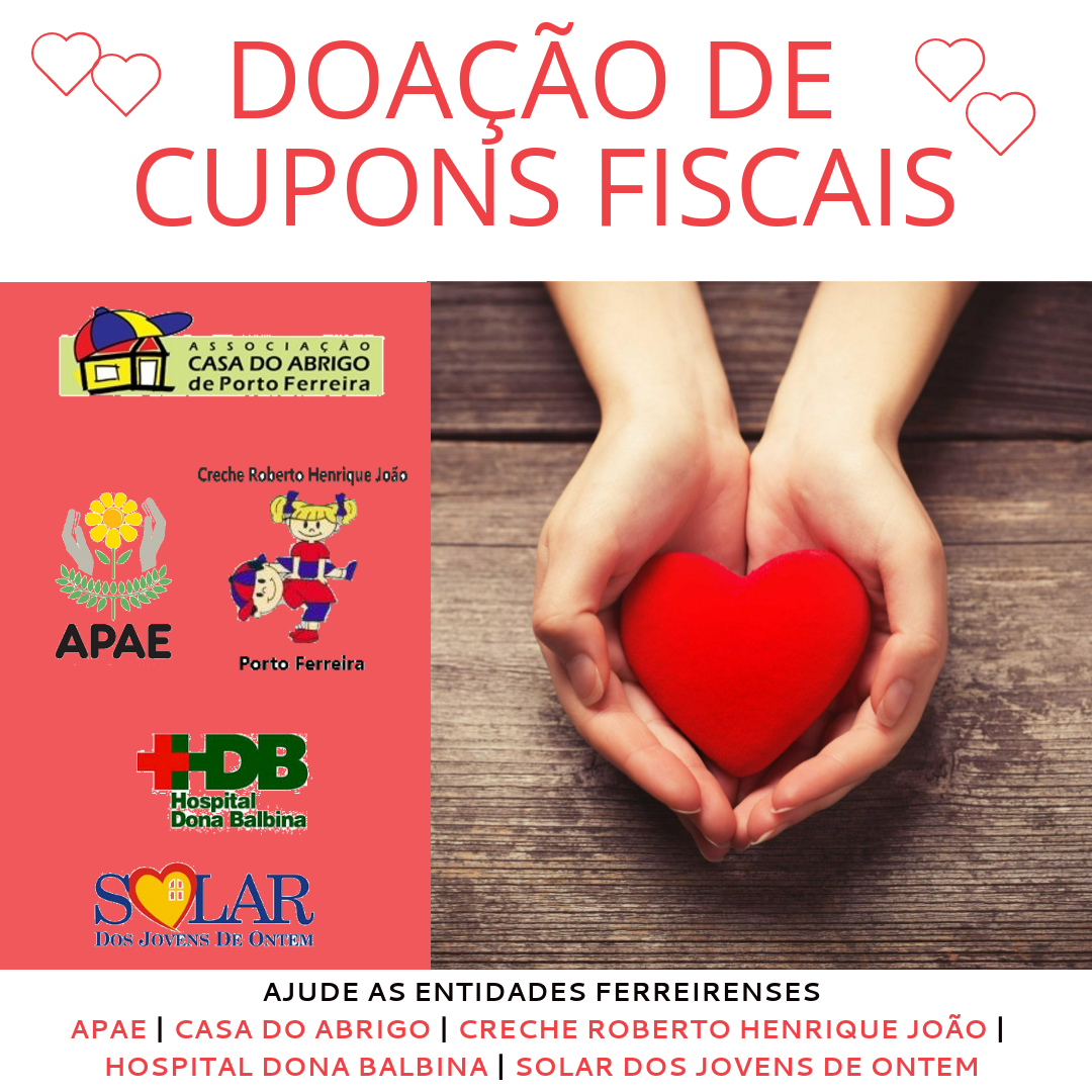 Associação de Pais e Amigos dos Excepcionais (Apae) - É uma instituição filantrópica, sem fins lucrativos. Criada em 7 de junho de 1972, tem como objetivo suprir a necessidade de atendimento das crianças e jovens especiais do município. Está localizada na rua Osório Alves, 107, no Jardim Porto Novo. Para doar seus cupons para esta entidade, ao se inscrever no site da Secretaria da Fazenda, basta mencionar o CNPJ da Apae: 47.007.471/0001-95. Se precisar de ajuda, ligue para 3581-2526 | www.apaeportoferreira.org.br